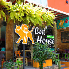Des chats de toutes races dorment sur des coussins moelleux, Des étagères murales permettent aux félins de grimper partout, Des visiteurs sirotent des boissons colorées en caressant les chats, Des illustrations félines décorent les murs avec humour, Des jouets pour chats sont éparpillés sur le sol, Des menus illustrés présentent des boissons et desserts kawaii, Des arbres à chat en bois naturel occupent les coins, Des peluches et figurines décorent les étagères, Des fenêtres laissent entrer une lumière douce, Des coussins en forme de pattes sont posés sur les fauteuils, Des chats se prélassent sur les tables, indifférents et royaux, Des visiteurs prennent des photos avec les félins, Des plantes vertes ajoutent une touche de fraîcheur, Des affiches rappellent les règles de respect envers les animaux, Le café est un cocon de tendresse et de fantaisie.
